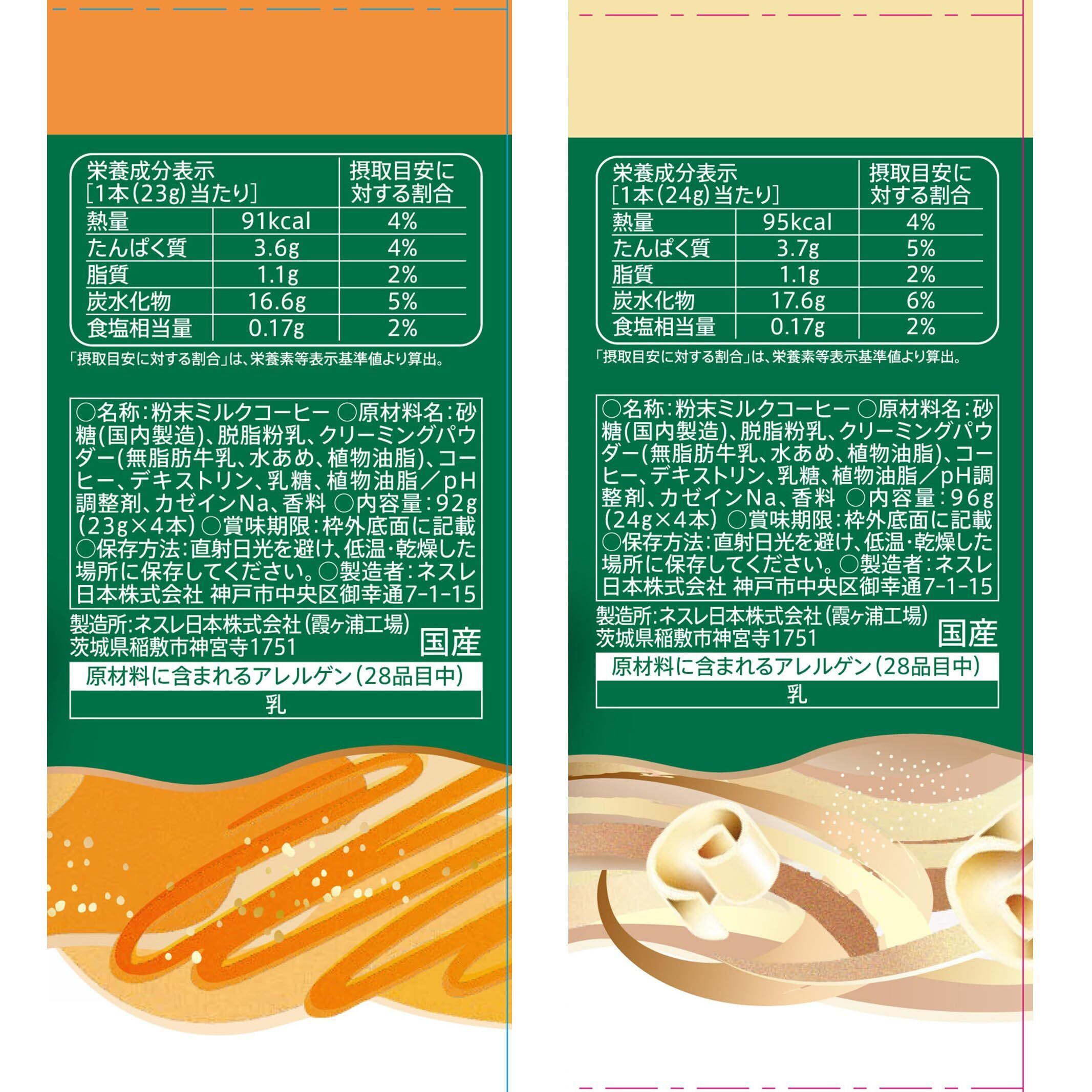 【カフェ ラテ】クリーミングパウダー(無脂肪牛乳、水あめ、植物油脂)(スペイン製造)、脱脂粉乳、砂糖、コーヒー、デキストリン、乳糖、食塩、植物油脂/pH調整剤、カゼインNa、香料【キャラメル ラテ】砂糖(国内製造)、脱脂粉乳、クリーミングパウダー(無脂肪牛乳、水あめ、植物油脂)、コーヒー、デキストリン、乳糖、植物油脂/pH調整剤、カゼインNa、香料【抹茶 ラテ】砂糖(国内製造)、脱脂粉乳、クリーミングパウダー(無脂肪牛乳、水あめ、植物油脂)、抹茶、デキストリン、乳糖、植物油脂/pH調整剤、カゼインNa【カフェ モカ】脱脂粉乳(国内製造)、砂糖、ココアパウダー(ココアバター10~12%)、クリーミングパウダー(無脂肪牛乳、水あめ、植物油脂)、コーヒー、デキストリン、乳糖、食塩、植物油脂/カゼインNa、pH調整剤、香料【ホワイト モカ】砂糖(国内製造)、脱脂粉乳、クリーミングパウダー(無脂肪牛乳、水あめ、植物油脂)、コーヒー、デキストリン、乳糖、植物油脂/pH調整剤、カゼインNa、香料