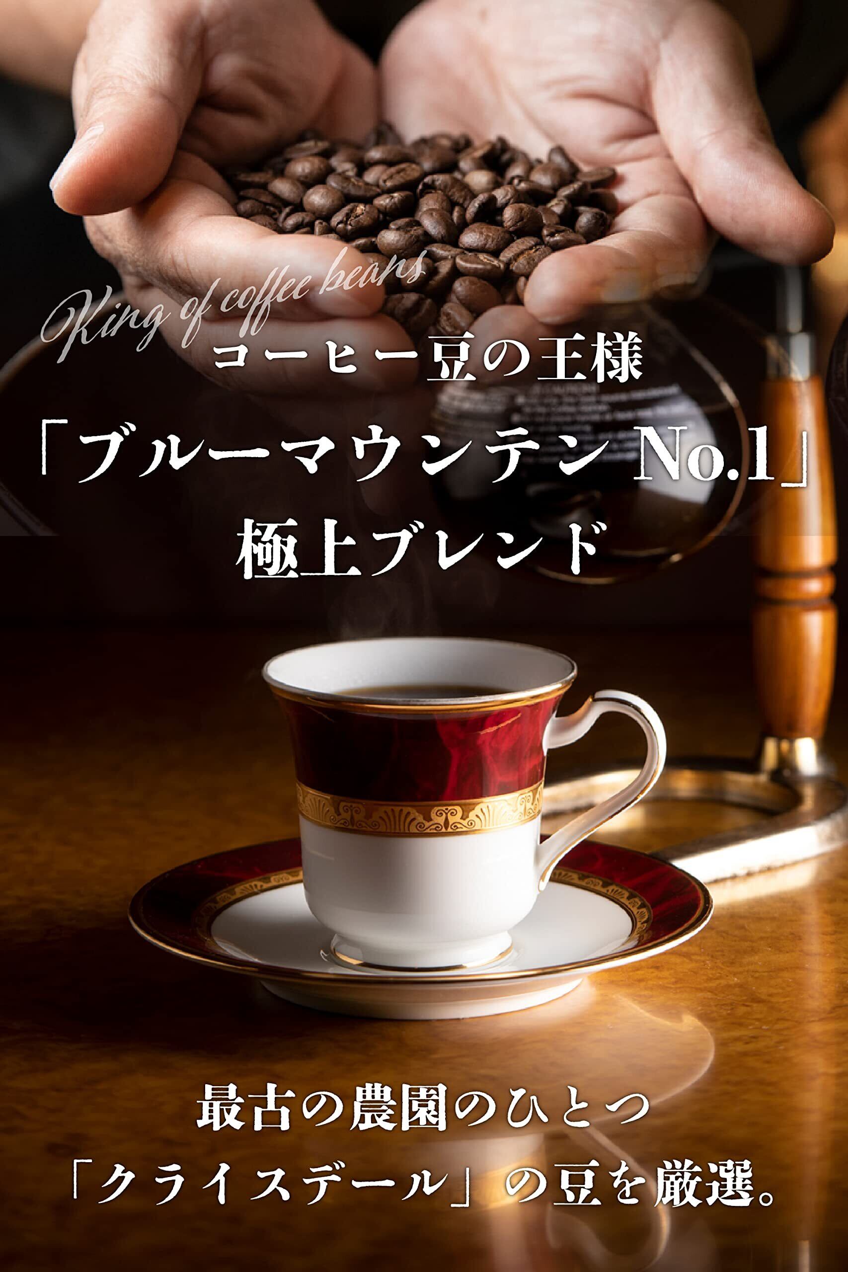 ✅【コーヒーの王様、ブルーマウンテンブレンドで特別で優雅な時間を】コーヒー豆の王様と称される、ジャマイカ産「ブルーマウンテンNo.1」を配合。最古の農園のひとつ「クライスデール」の珈琲豆を採用しています。深煎りの豆と独自にブレンドすることで、コクの中にまろやかな苦味が漂います。