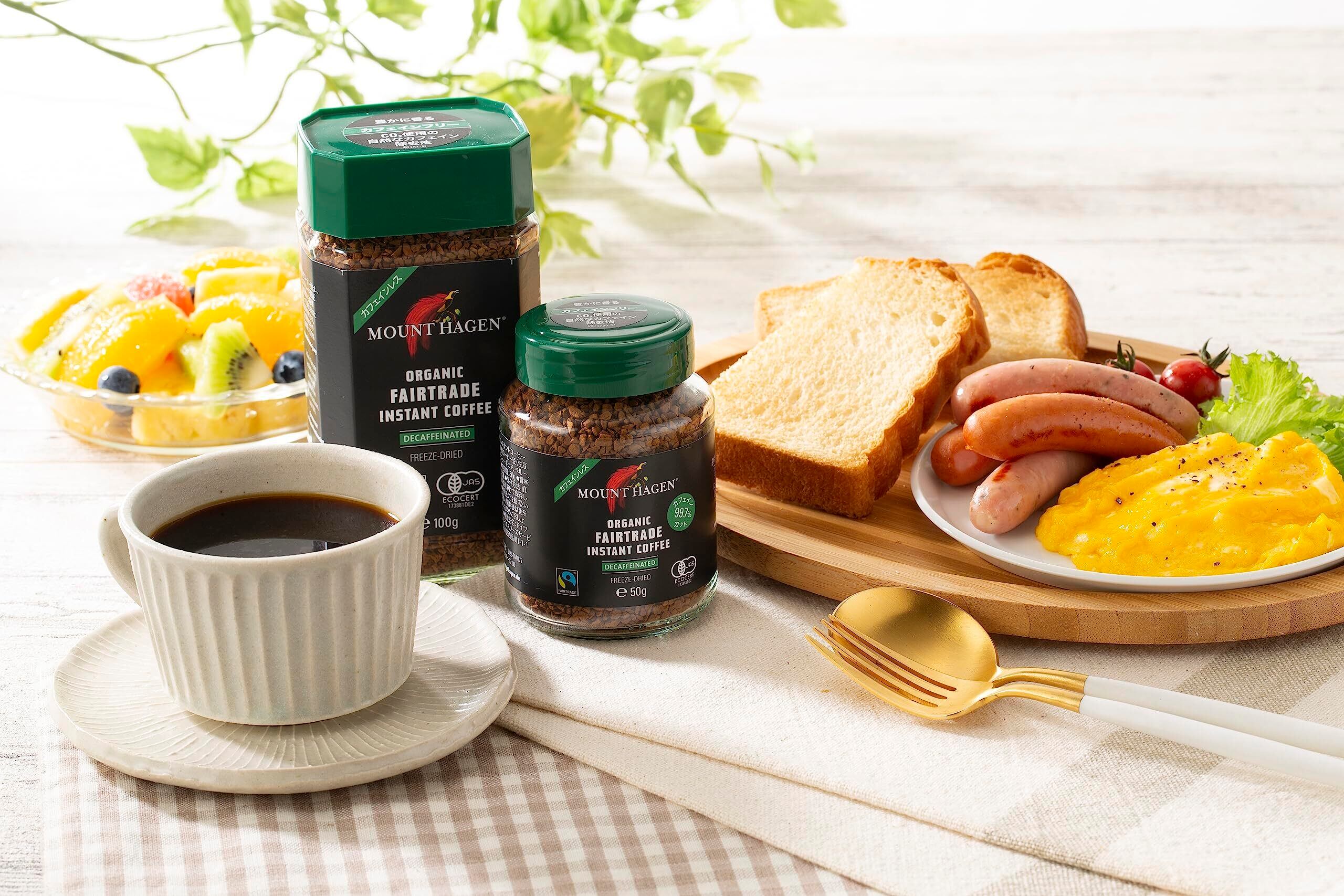 マウントハーゲン オーガニック フェアトレードカ フェインレスインスタントコーヒー50g 自然なカフェイン除去プロセスで香りそのままカフェイン99.7%カット