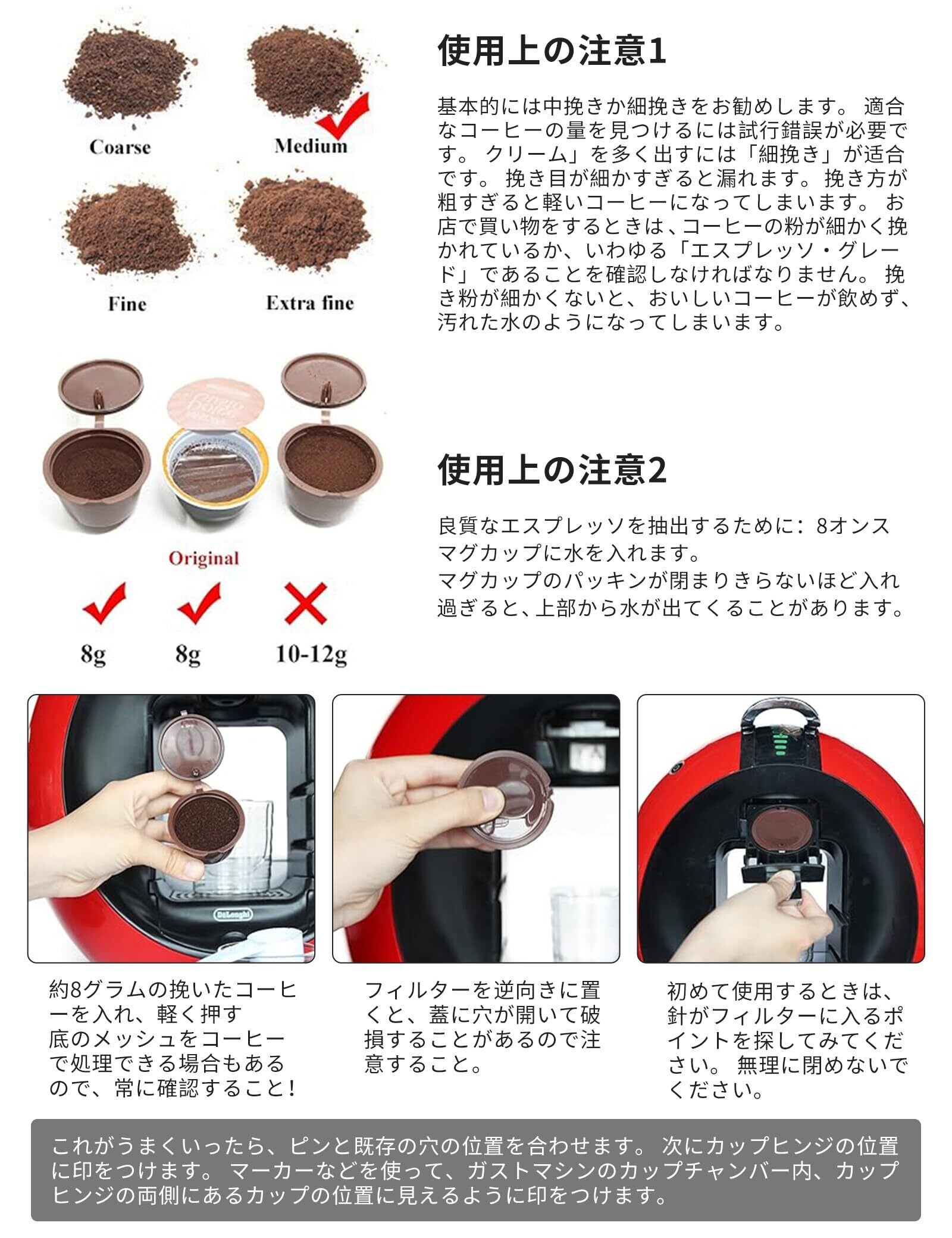 【適用機種】:ドルチェガスト専用カプセル、極細のコーヒー粉は使用しないでください。ドルチェガストブランド以外のコーヒーメーカーも購入可能です。ご自宅でコーヒーを入れて、仕事帰りに職場に持っていけば、通常のコーヒーカプセルの購入より数十倍安く、環境に優しいリサイクル可能です!