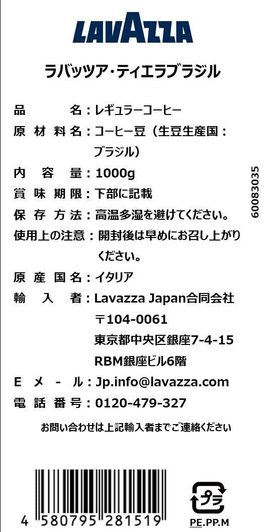 LAVAZZA(ラバッツァ) ティエラ ブラジル 100% アラビカ (豆) 1kg