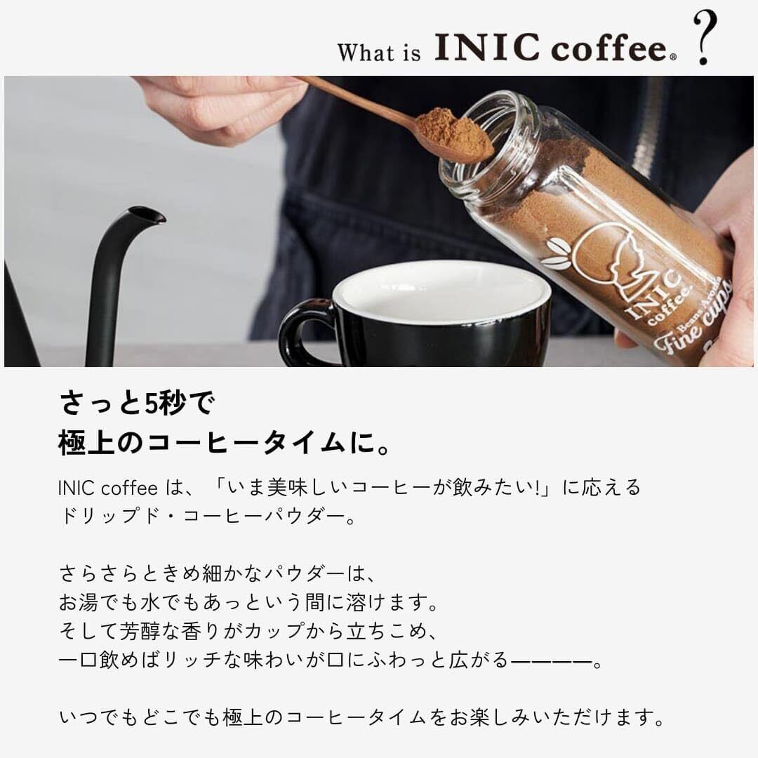 「手軽においしいコーヒーが飲みたい」そんな方に届けたい。イニックコーヒーは、たった5秒でまるでドリップしたような、本格コーヒーが楽しめます。従来のインスタントコーヒーとは全く異なる製法で、ハンドドリップで淹れたコーヒーのおいしさを表現することに成功しました。